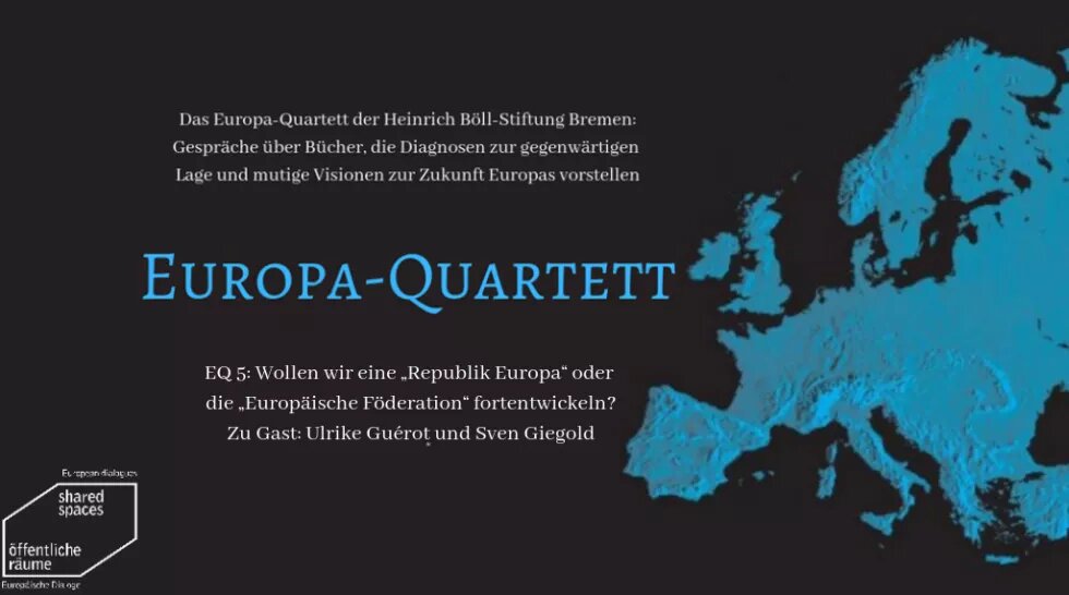 Das 5. ‚Europa-Quartett’ der Böll-Stiftung Bremen hat Guérot und Giegold zum Streitgespräch eingeladen. Mit von der Partie sind Emanuel Herold (Pulse of Europe) und die EU-Expertin Ulrike Liebert. Die Kernfragen lauten: Welches Zukunftsmodell wollen wir für die EU - die politische Utopie einer Republik Europa oder die realistische Konzeption einer europäischen Föderation? Also ‚großer Wurf’ oder ‚kleine Schritte‘?
